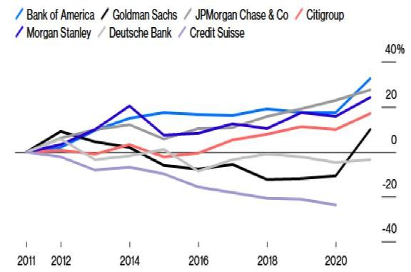 华尔街部分银行的平均薪资水平并没有超过10年前