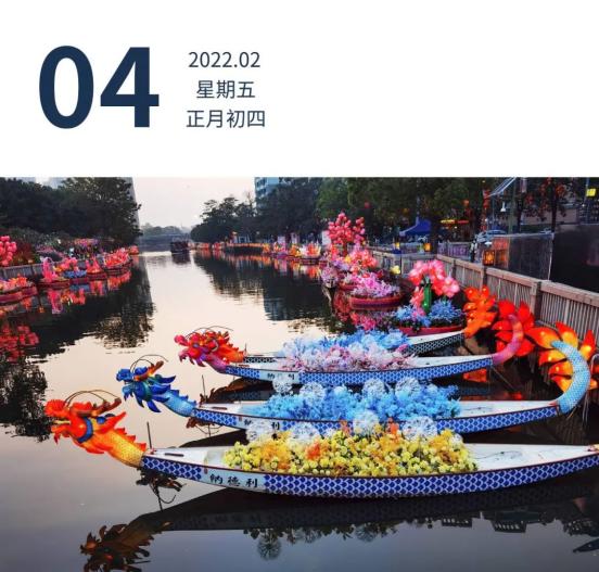 佛山市南海区的梦里水乡景区,一年一度的春节水上集市,满载着鲜花、年货的小船停靠岸边。