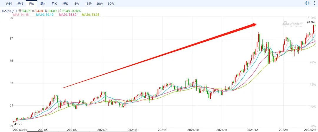 欧洲碳排放期货价格连创历史新高。截至北京时间2月3日17时25分,欧洲碳排放期货价格最高涨至94.94欧元/吨。今年以来,该期货品种涨幅超17%,延续了2021年以来的连续上行趋势。