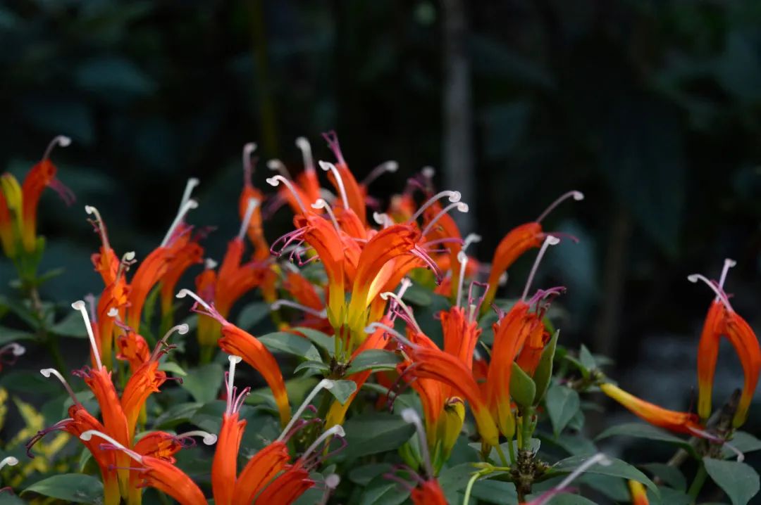 冬季,上海植物园两个展览温室内各色花卉争相开放,每年春节期间炮仗花盛放更添一丝喜庆的氛围。这些花卉争奇斗艳,生机勃勃地迎接新年。