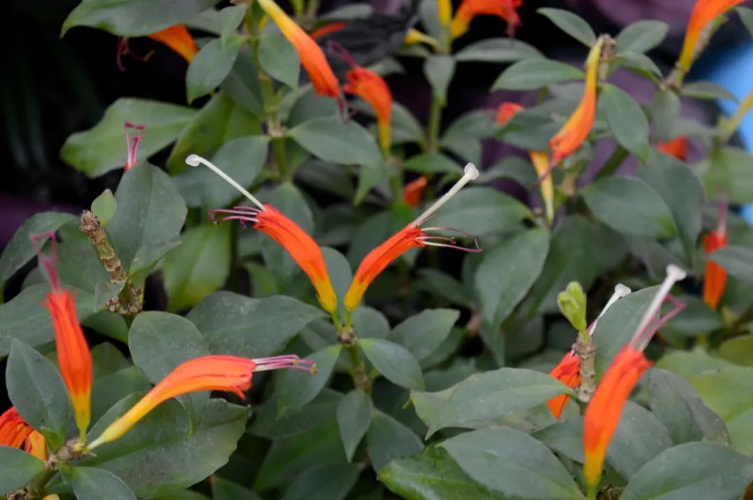 因花冠、花萼的颜色和造型很像旋转出来的口红而得名“口红花”。可全年开花。