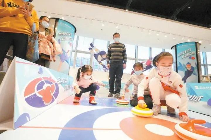 虎年迎冬奥,王府井书店升级,孩子们在读书的同时还能体验冰雪项目的乐趣。