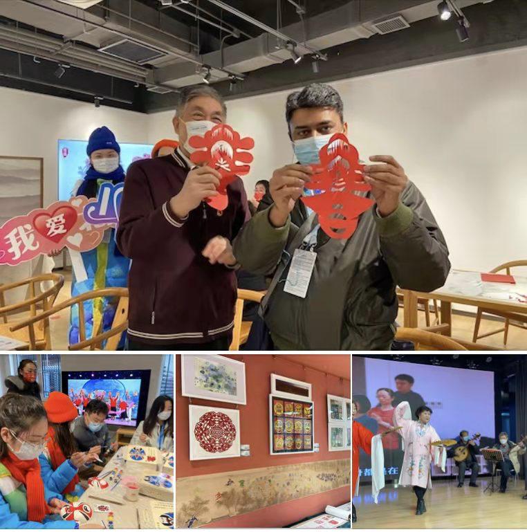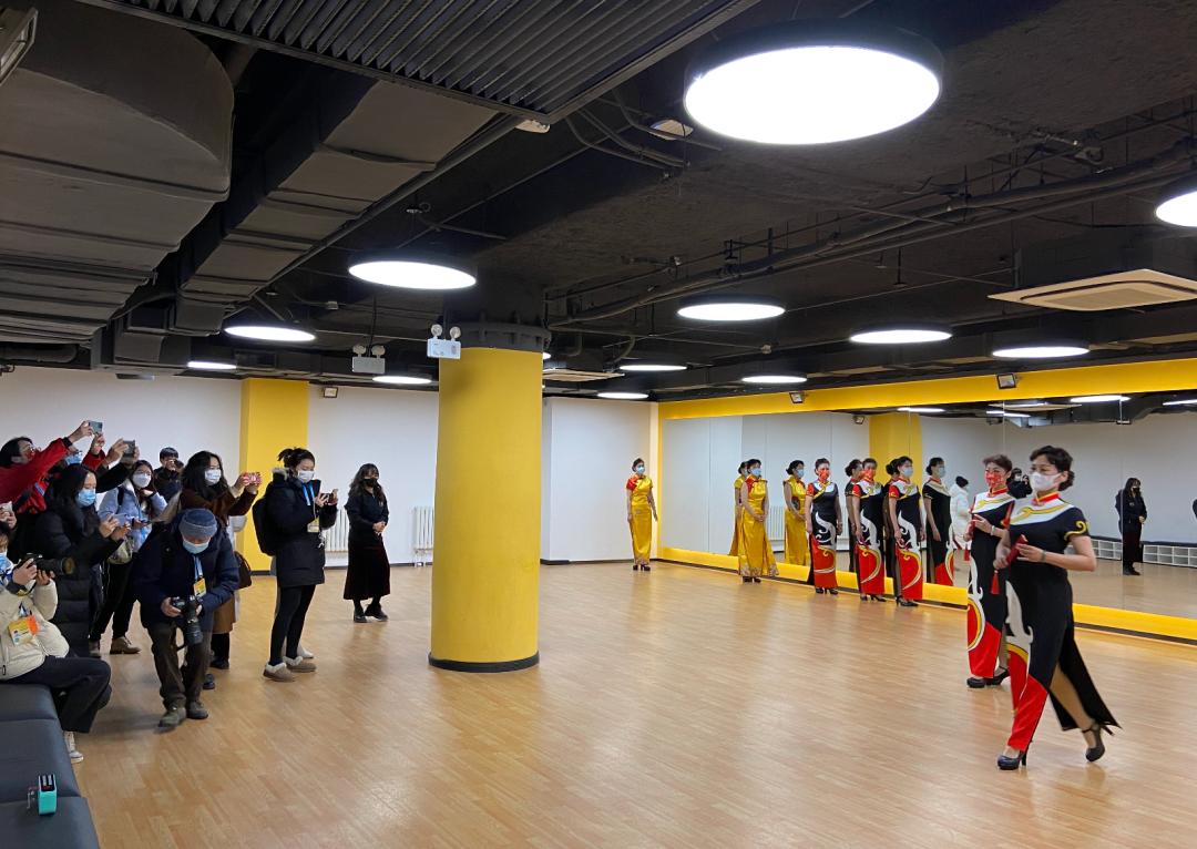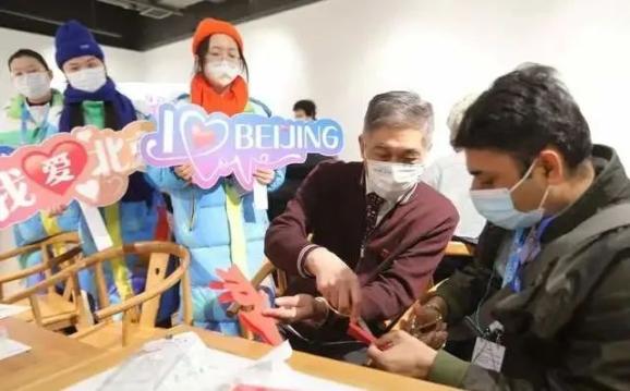 在轻松愉悦的氛围下,记者们同北京市民一道,体验了非遗剪纸、非遗旗袍盘扣制作、非遗脸谱彩绘,观赏了京剧队和模特队排练,感受了一把“北京生活”,还用非遗剪纸技艺留下了自己的“冬奥记忆”。