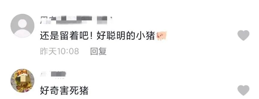 “男朋友开玩笑说,明年打算把猪吃掉。”蒋女士说,她对着小猪叫名字时,男朋友就在身边,他们都觉得很搞笑。后来,她又将其他朋友的名字也喊了一遍,小猪也会回应,但速度没那么快。