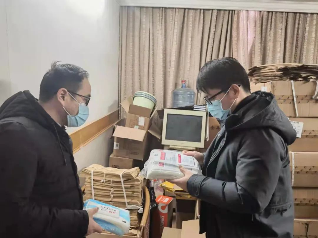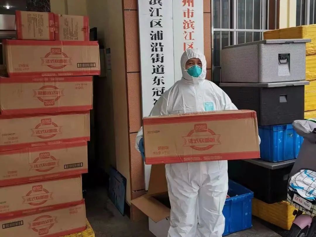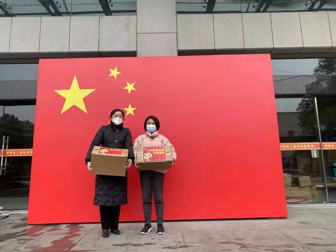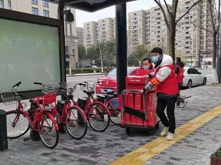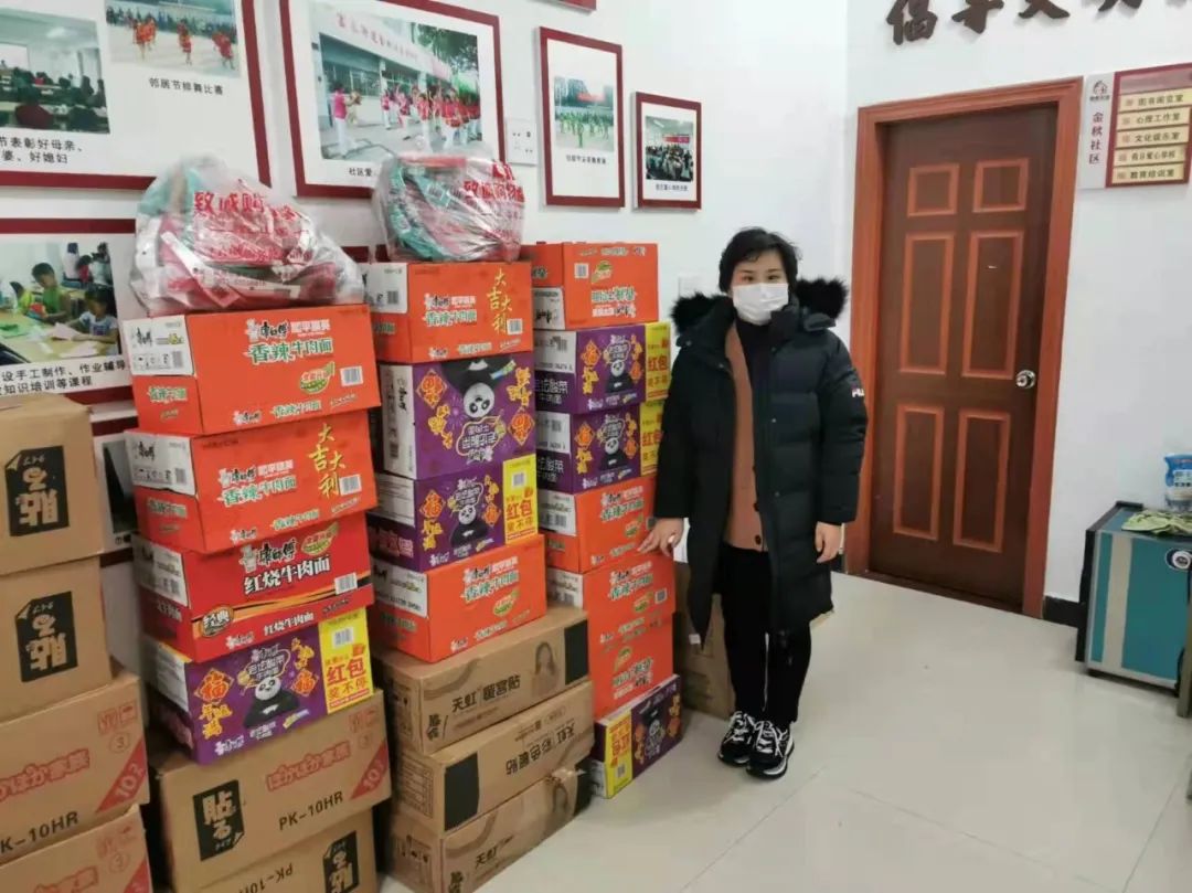 富阳支部党员、中荷电子有限公司总经理许青2月3日参与了金秋社区核酸检测点志愿服务工作,也为社区捐赠方便面、暖宝宝和热水袋等物资。