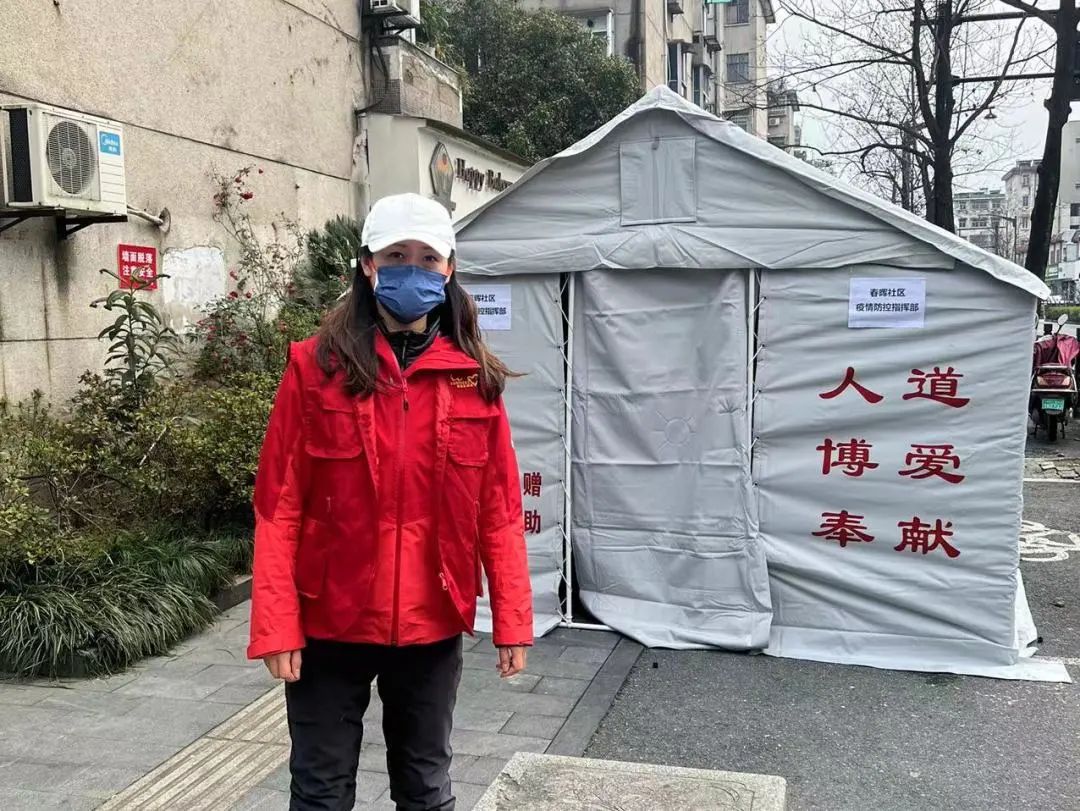 市人大代表、萧山基层委委员、区交投集团人力资源部经理吴建霞随集团组织的第三批抗疫志愿者队伍,赴闻堰戈雅公寓参与一线疫情防控工作,对小区居民实行24小时进出管控。