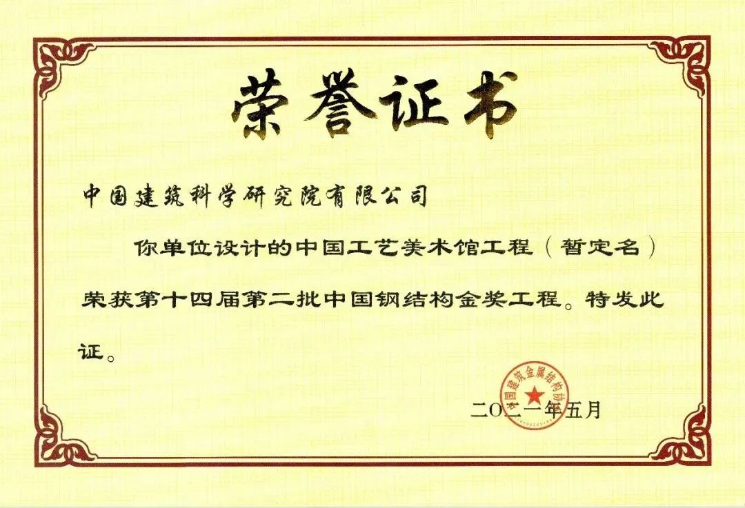 由中国建研院与德国gmp国际建筑设计有限公司承担总包设计的 “中国工艺美术馆、中国非物质文化遗产馆”历经八年的前期研究、全过程设计、施工建造,于2022年2月5日落成开馆,并举办首展“中华瑰宝——中国非物质文化遗产和工艺美术展”。
