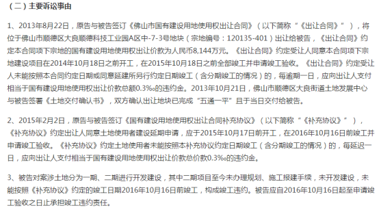 据了解,2013年8月22日,佛山市顺德区大良街道土地发展中心与顺特设备签订合同,双方协议于2015年10月18日前竣工,后顺特设备提出延期竣工,双方协议于2016年10月15日竣工,每延迟竣工一日,应向出让人支付相当于国有建设用地使用权出让价款总价款0.3‰的违约金。现如今二期项目未能在规定时间前竣工,故构成竣工违约。对此,佛山市自然资源局于2021年8月左右向地方法院提起诉讼。