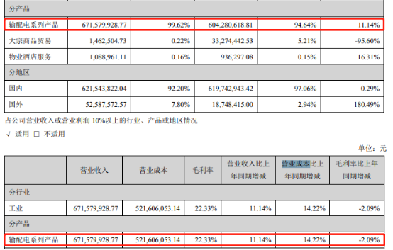 与此同时,2021年上半年,顺纳股份输配电系列产品营业收入同比增长11.14%,营业成本同比增长14.22%,营业成本增幅大于营业收入增幅;同期毛利率为22.33%,较2020年上半年同期下降2.09%,而2019年上半年,输配电系列产品毛利率为29.17%。