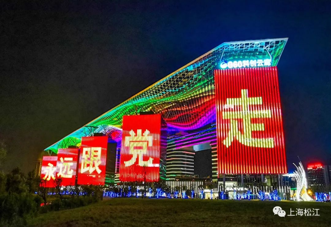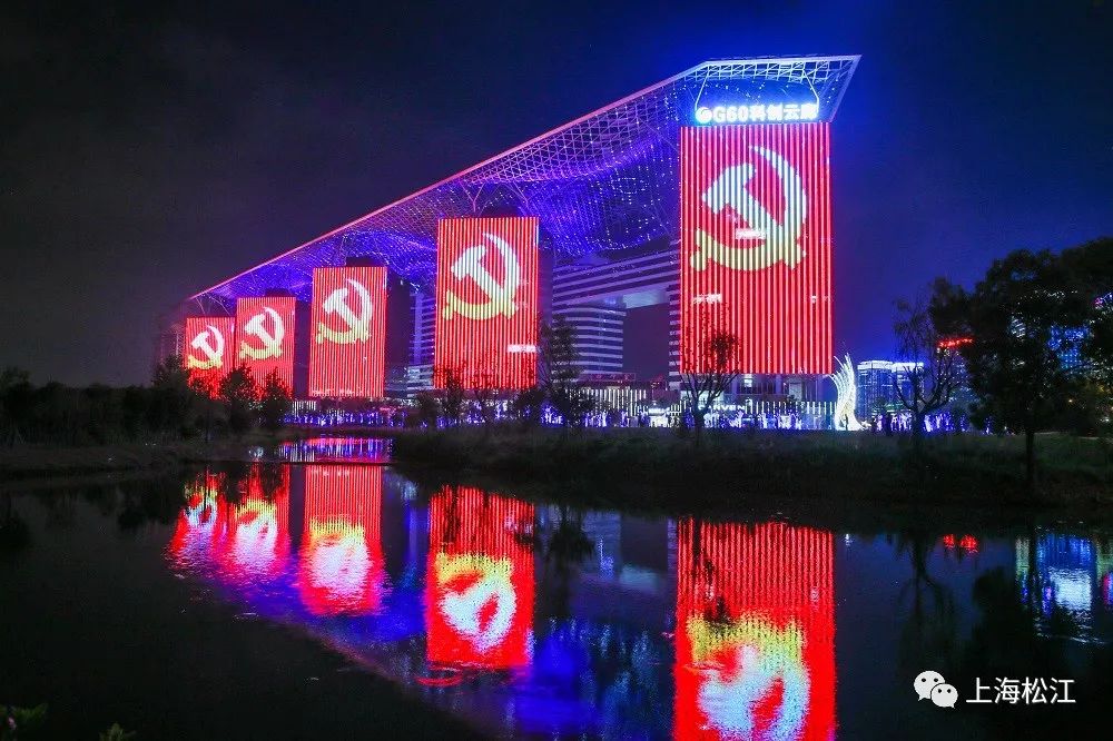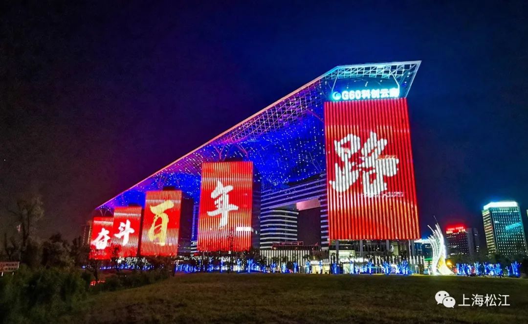 G60科创云廊展示的主题光影秀,在建党百年之际呈现了8分钟的建党百年华彩,讲述中国共产党百年辉煌历程。