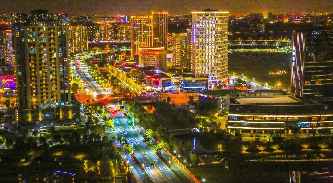 国际生态商务区增设联动媒体立面式景观照明,呈现精彩光影秀,为商业繁荣烘托氛围。