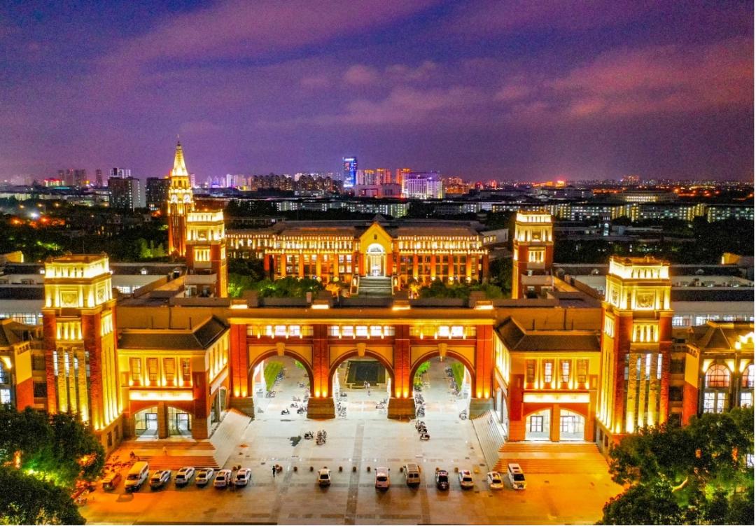 华东政法大学的夜景灯光不仅映照出建筑的古典美,也照亮了广富林文化遗址几千年的历史文化。