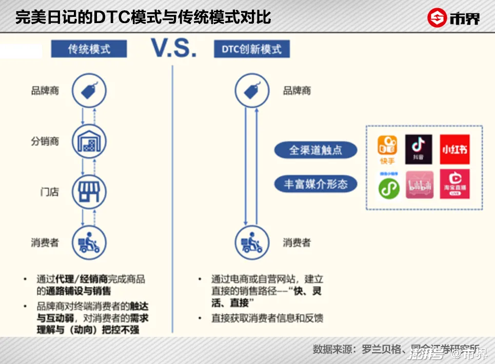 完美日记在销售上采用DTC(直接面向消费者)的模式,没有中间层级,所有沟通都直接面对消费者。比如在研发上,完美日记会将产品口碑和粉丝偏好进行分析,作为产品开发的重要依据之一,每个产品和活动前都会在内部进行多轮调研投票。