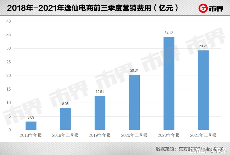 据逸仙电商披露的2021年第三季度财报,公司三季度净收入同比增长6%为13.4亿元,净亏损3.6亿元。虽然亏损幅度同比收窄(去年同期6.4亿元),但营销费用仍居高不下,2021年第三季度,逸仙电商销售和营销费用为9.1亿元,占收入的67.9%。