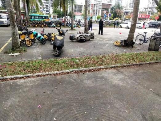 由于醉驾驾车失控,先碰撞上两辆共享电动车、琼C1××EF号牌二轮摩托车、琼C17××P号牌二轮摩托车和一辆无号牌电动二轮摩托车。