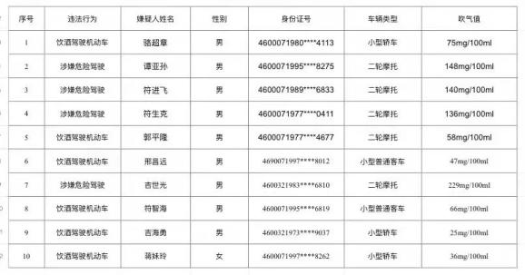 为有效震慑严重交通违法行为,不断提高广大驾驶人安全驾驶意识,东方公安交警现向社会公开公示2月4日至5日查处的10名酒后驾驶人员名单。