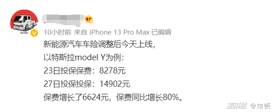 另外,一些本土新能源品牌也遇到了保费上涨的情况,只是没有激起像特斯拉那么大的波澜。