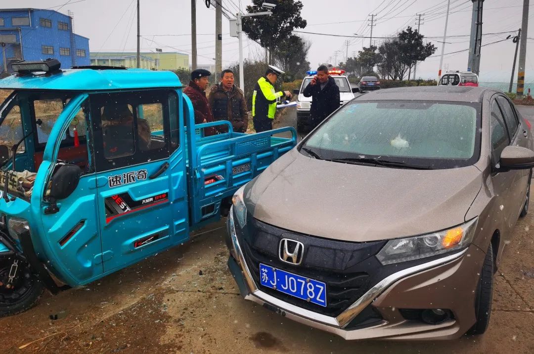 2月7日10时许,大丰区公安局交警大队接到报警称,两辆电动三轮车相碰发生侧翻。民警立即赶赴事故现场,询问人员受伤情况,并将当事人侧翻的电动车扶正,并与其家人取得联系。