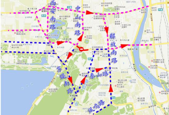 11路:沿中山南路-云龙山隧道-泰山路-解放路绕行