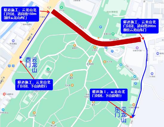 8路:沿中山南路-云龙山隧道-泰山路-云东路绕行