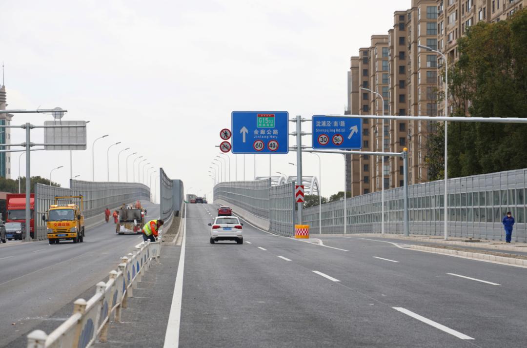 桥体除了连续跨掘石港航道及两岸主道路并增设匝道外,主桥设计采用下沉式钢桁架拱桥,这种桥型结构轻巧,整体性强,比一般带拱上建筑的肋拱桥受力更合理,材料更节省,适用于土软的地区。刚柔并济的造型让人过目难忘,将玉带般的流畅曲线和刚劲有力的桁架形式相融合,也可以说是一次桥梁科技、美学与人文的融合。据悉,早在1966年7月,经过金山建桥者们的不断尝试努力,金山建成了全国第一座钢筋混凝土桁架拱桥新兴桥,随后又很快推广到公路桥,带给一些省市以典范意义,金山由此被称为“桁架拱桥之乡”。