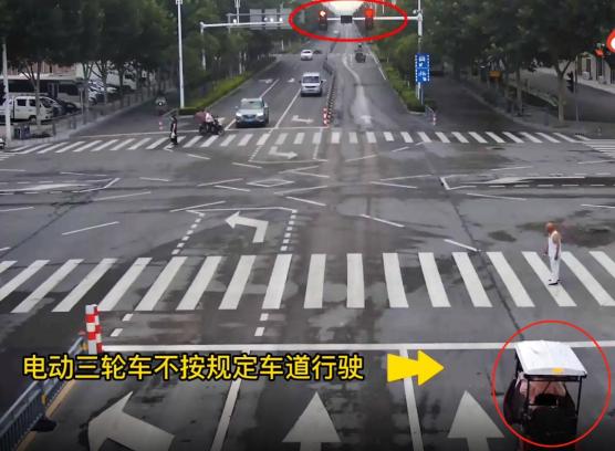 电动三轮车无视路口信号灯