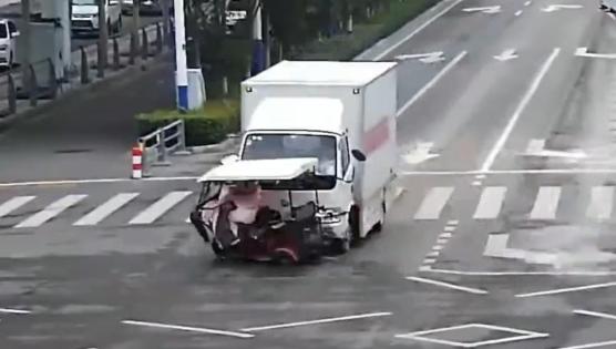 轻型厢式货车撞倒