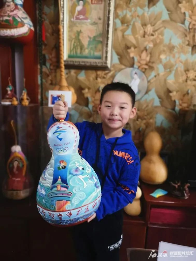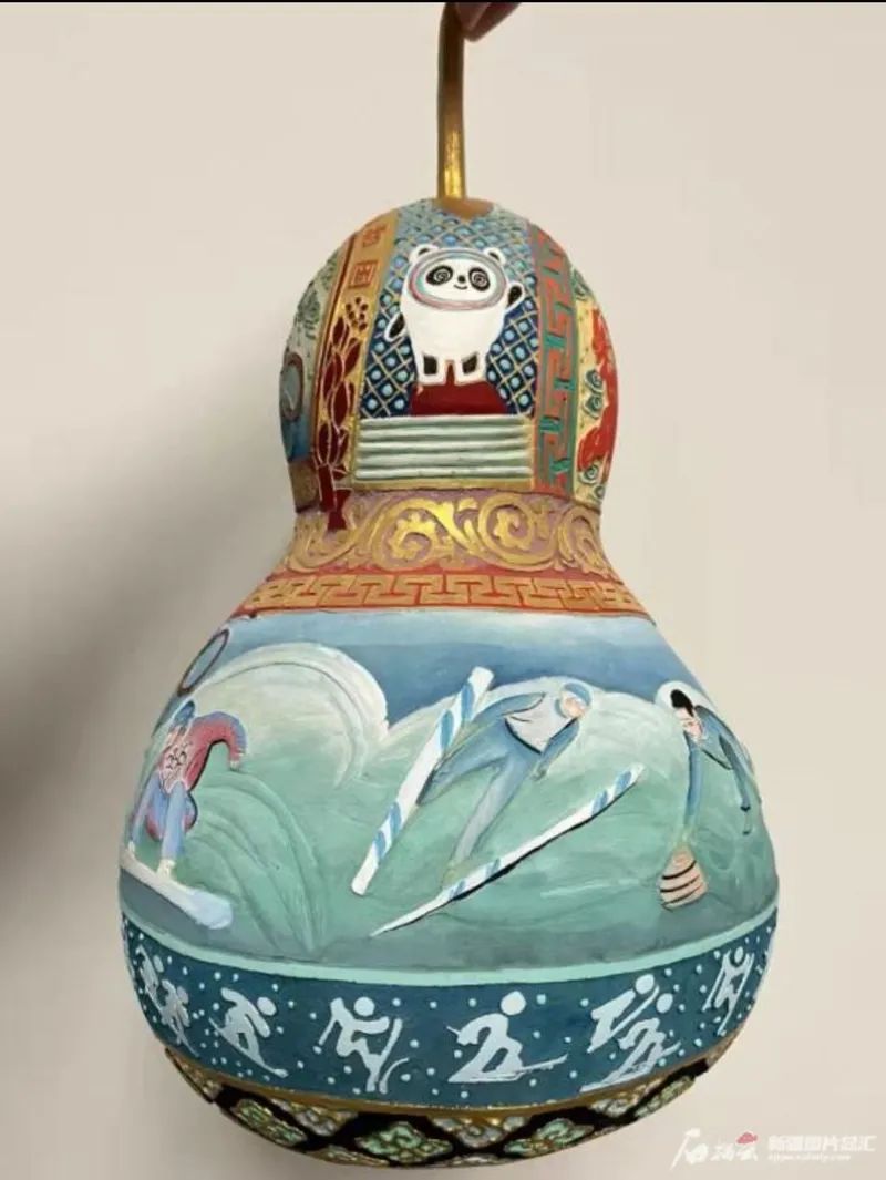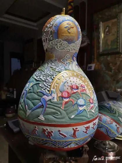 另一件作品《激情冰雪 助力奥运》的作者是新疆教育学院实验小学四年级学生唐茂循。“这件作品很有创新意识,用线雕、针雕、打磨、刻花等传统葫芦雕刻技法,多元素、多角度、多方位立体展现了冬奥会会标、吉祥物、特色运动项目等元素,活力感强,是传统技法与现代主题融合创作的佳品。”马江红说。