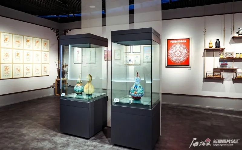 摆置在展厅里的葫芦雕刻作品 非遗展主办方提供