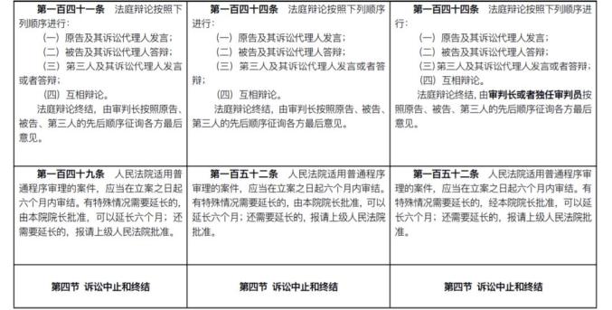 十六、将第十三条中的“诚实信用”修改为“诚信”;将第四十六条、第一百三十七条、第一百四十一条中的“审判长”修改为“审判长或者独任审判员”;将第八十二条中的“节假日”修改为“法定休假日”;将第一百零六条、第一百五十一条、第二百零六条、第二百五十七条中的“抚育费”修改为“抚养费”;将第一百二十八条中的“合议庭组成人员”修改为“审判人员”;将第一百四十九条中的“由本院院长批准”修改为“经本院院长批准”;将第一百八十四条、第一百八十五条中的“意外事故”修改为“意外事件”;将第一百八十七条中的“其近亲属或者其他利害关系人”修改为“利害关系人或者有关组织”;将第一百九十条中的“或者他的监护人”修改为“本人、利害关系人或者有关组织”;将第一百九十三条中的“民法通则”修改为“民法典”;将第一百九十六条中的“物权法”修改为“民法典”;将第二百三十九条中的“从规定的每次履行期间的最后一日起计算”修改为“从最后一期履行期限届满之日起计算”。