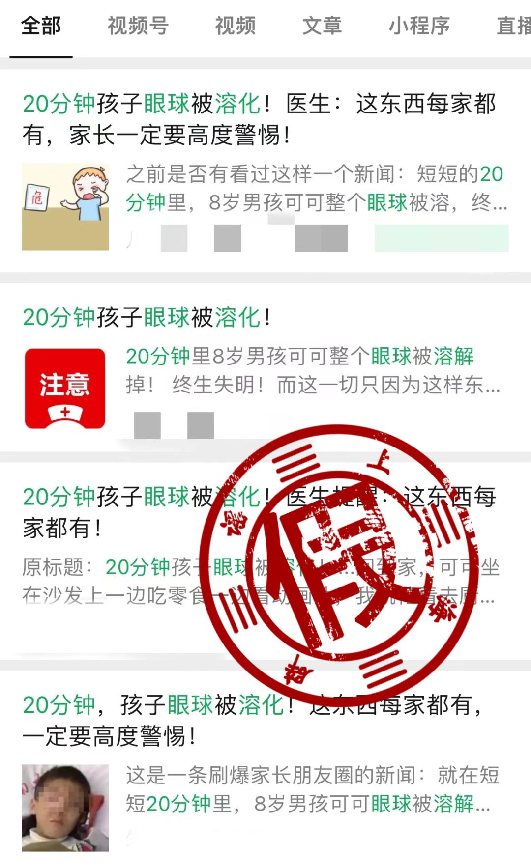 在求证“20分钟孩子眼球被溶化”这条消息时,记者发现,打着科普的名义传播谣言并不罕见。