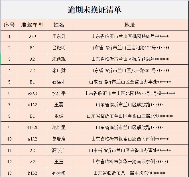 逾期未换证名单