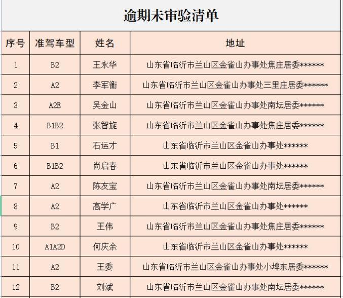 公示一批AB类驾驶人逾期未审验、