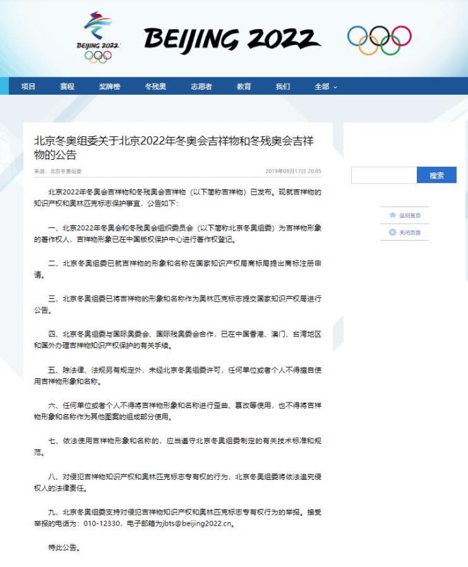 根据北京冬奥组委2019年9月17日发布公告,北京冬奥组委作为冰墩墩形象的著作权人,已将冰墩墩、雪容融形象在中国版权保护中心进行著作权登记,并已就吉祥物的形象和名称在国家知识产权局商标局提出商标注册申请,还将吉祥物的形象和名称作为奥林匹克标志提交国家知识产权局进行公告。