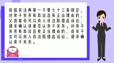 我国民法典第一千零七十三条规定,对亲子关系有异议且有正当理由的,父或者母可以向人民法院提起诉讼,请求确认或者否认亲子关系。对亲子关系有异议且有正当理由的,成年子女可以向人民法院提起诉讼,请求确认亲子关系。亲子关系的认定,对子女来说意义重大,不仅涉及人身关系的重大改变,还涉及监护、抚养等一系列权利义务的产生、变更和消灭。母亲的身份一般随着子女出生的事实即可确定,司法实践当中亲子关系的确定,主要是确定子女与父亲的血缘关系。