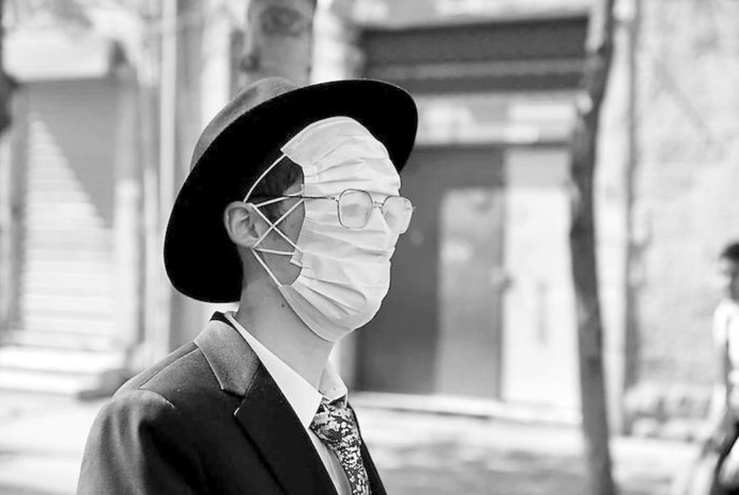 以色列一名民众带了两个口罩