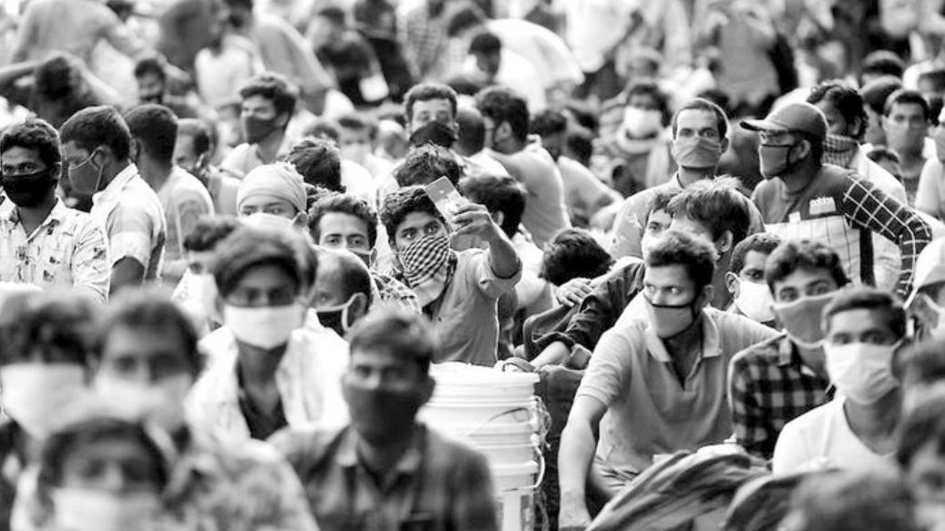 印度拥挤的人群,口罩成了标配