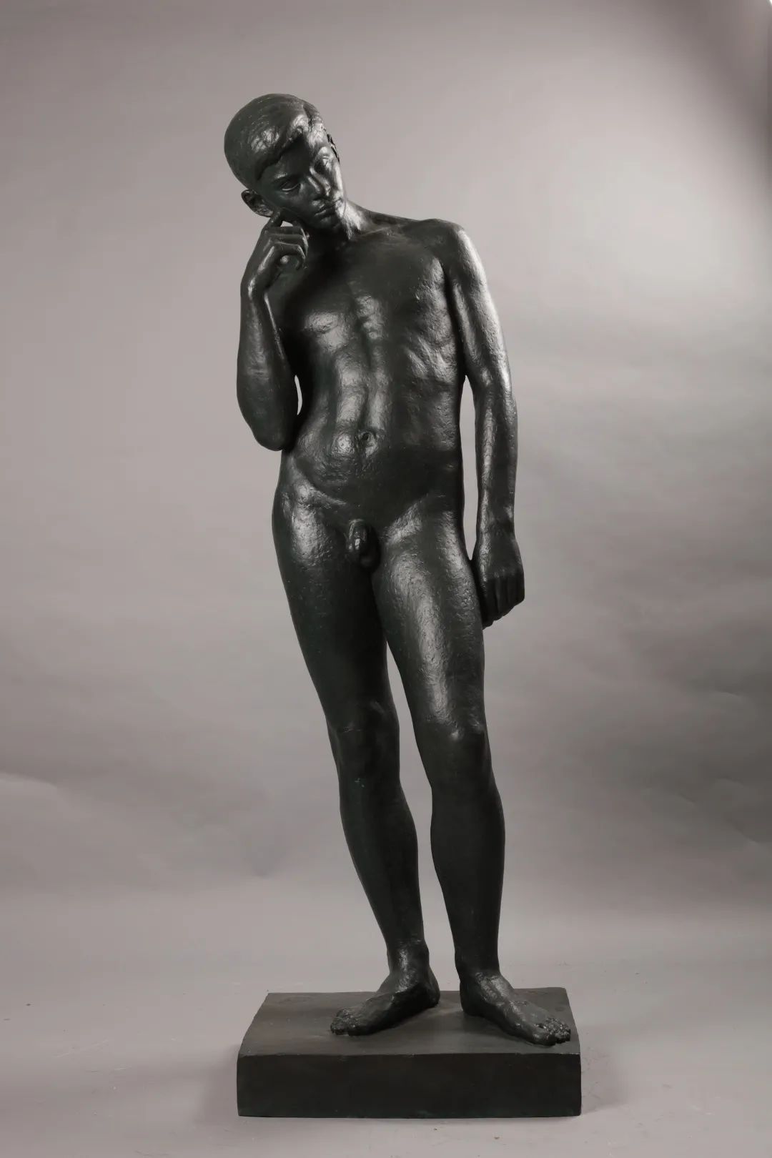 我们今天纪念和学习滑田友先生,有两点十分重要。一是要学习滑先生始终抱有坚定的理想,为20世纪中国雕塑的发展不遗余力的探索精神。从留学欧洲到回到中国,他始终怀以对祖国、对人民、对艺术的赤胆忠诚。一个远在天涯的艺术游子,当抗日战争的烽火硝烟在祖国大地燃烧的时候,他创作了一批反映中国人民遭受外来侵略而奋起反抗的作品,这种思想境界,我们设身处地回到当年的时间节点上,能够深深感觉到这是一种作为中国人、中国艺术家的胆略、勇气和正义。每每看他的作品,我都感到他的作品中就是贯穿了这么一种正气,一种在雕塑内部凝聚的力量。靳先生几次对我讲,滑田友在法国学雕塑是学得最到位的,他研究西方的经典也最深厚。我对雕塑系主任张伟教授说,要把滑先生的作品放到我们的大石膏教室去,让同学们作为对象来画素描,重要的不是画素描,而是去读前辈作品的精髓。二是要学习滑田友先生坚持以中为本,中西融合,最后达到以中化西的艺术研究之路。中国雕塑有悠久的历史,自20世纪这一百多年来,几代雕塑家先学法国再学俄罗斯,改革开放后面向世界,我们学了不少,但是怎样回到本土,重新出发,探索中国雕塑既民族又现代的道路,这是一个大课题。这次展览中有一大批作品我以往都没有见过,那是他在留学期间画的人物素描。与其说是素描,不如说是线描,线条语言精准地画出了物象的体感体积,线条具有古代高古游丝的品质,也可以说是铁画银钩,而这些中国语言就跟他最早在江苏甪直保圣寺临摹研习古代雕塑有关。我在展览前言中说了一句话,正因为他喝了第一口中国文化乳汁,所以他走向世界的时候,才永远没有忘记自己的文化乡愁。他作品的魅力就在于把中国的、传统的、民间的、民族的和西洋的、现代的形成很好的结合,而且从中透溢出来的是中国雕塑传统之光华,这些都值得我们认真去研究。