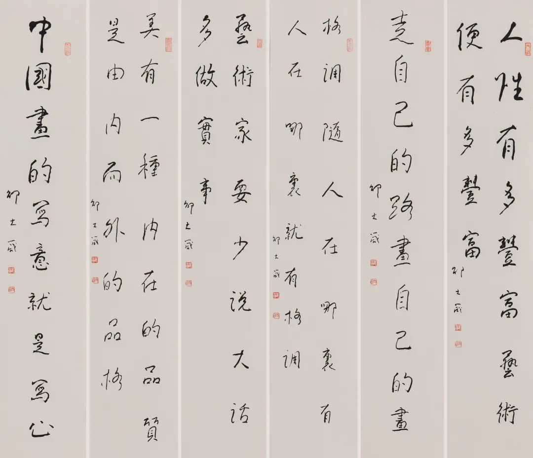 对邵先生的学术贡献当作专文专论,而他的绘画作品也是他艺术人生的有机组成部分。正是他的“双管齐下”,让人领略到他的全面学养和艺术才情。在他那里,“画”是“写”的补充,而“画”更是“文”的体现,他躬耕的“墨田”是他的“文心”的又一方驻守之地,其中的气象、气韵、气息无不与他的治学精神一脉贯通,又以抒发胸臆的笔墨语言展现出高蹈的情怀。