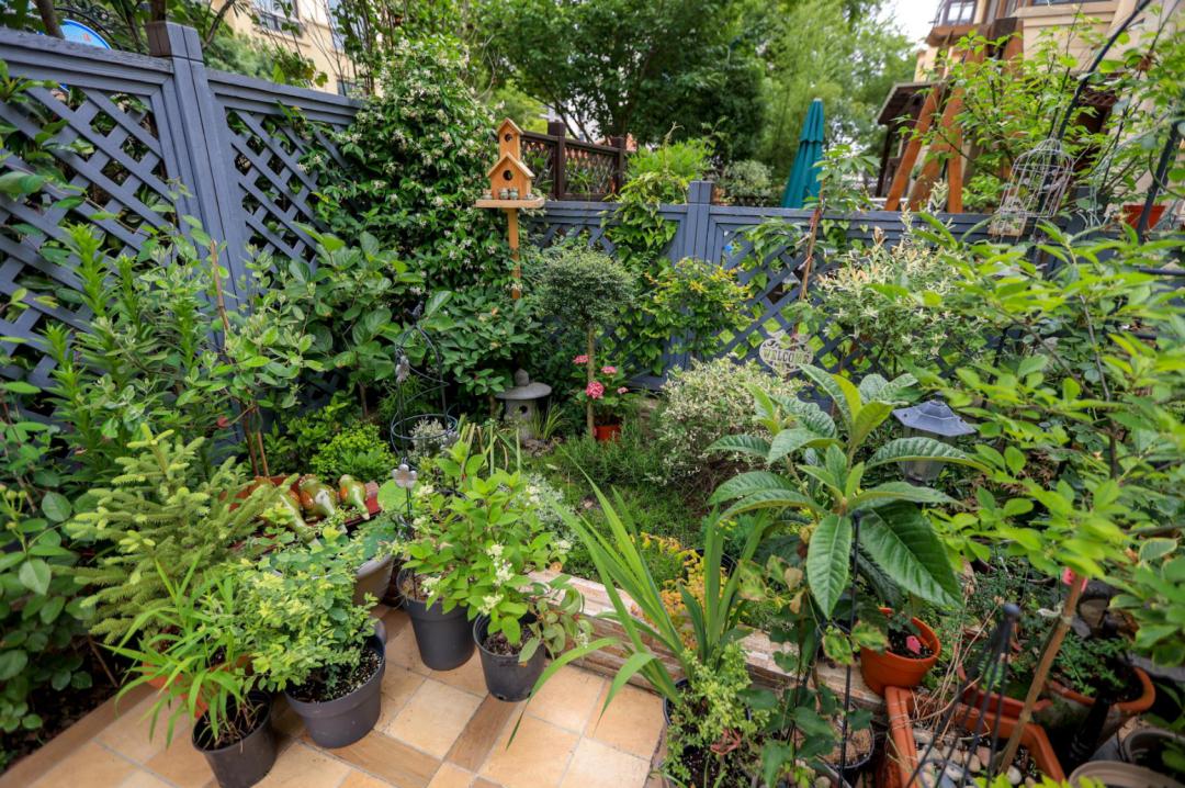 庭院四周绿植环绕,春季的虞美人、夏季的四季海棠、秋季的一串红、冬季的金盏菊,不同季节有不同花卉盛开。步入台阶,还会看到可爱的多肉,整个庭院呈现一派绿色祥和的气氛,景象美观怡人。