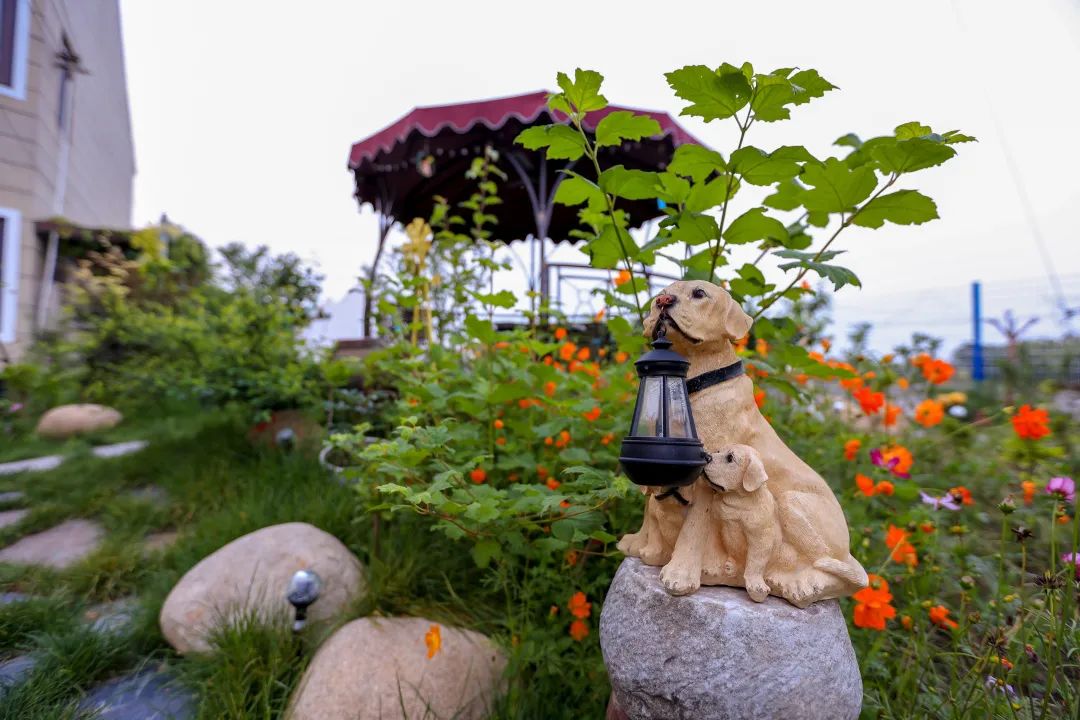 院子四周是用竹子做成的竹篱笆围墙,推开院门,蔷薇娇艳,海棠锦绣,花香扑鼻。小桥流水、亭台楼阁、白色帐篷、多彩风车,处处都有小惊喜。在这里,田园景色静谧宜人,蓝天和微风相得益彰。