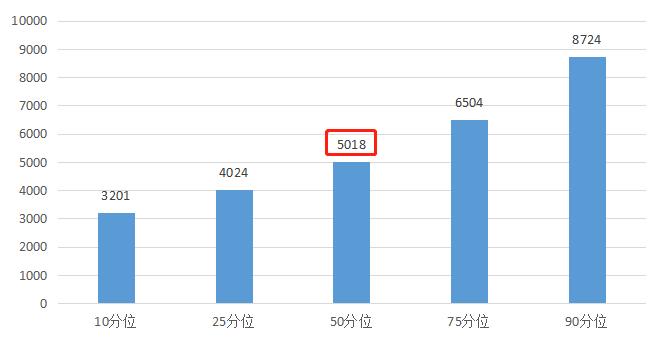 细分行业来看,“电力、热力、燃气及水生产和供应业”(13331元/月)超越“金融业”(11948元/月),为50分位上排名第一的行业,“房地产业”(9936元/月)排名与上年一样稳居第三。