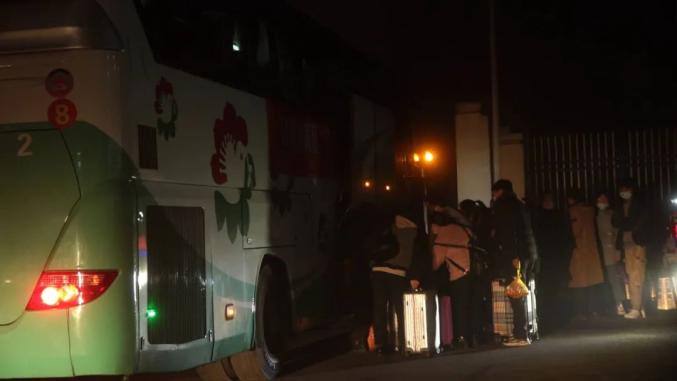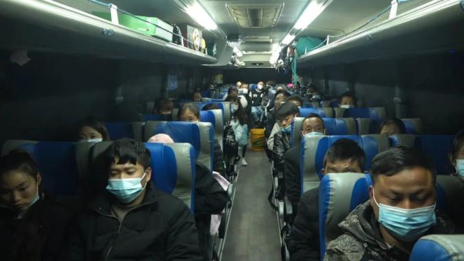 2月10日凌晨,天还没完全亮,但在威宁县人社局的院坝里却十分热闹。140余名外出务工人员,正在进行扫码登记,严格落实好防疫措施后,有序坐上了开往毕节高铁站的直达班车,等到达毕节后再统一乘坐免费高铁前往广州返岗复工。