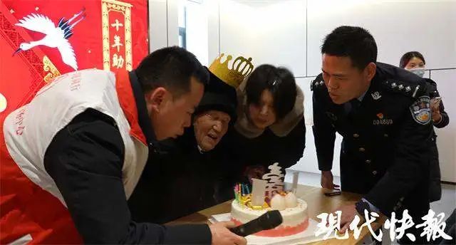 现代快报讯(记者 姜振军 通讯员 颜俊杰)" 今天我和大家聚在这里,为高付桂老人过 90 岁生日。10 年前,高老 80 岁生日时就约定,等他 90 岁的时候,我们还给他庆祝。今天,和大家一起见证我们的约定。同时,我们也和高老再定一个 10 年之约,祝他长命百岁!"2 月 10 日下午,在盐城市滨海县新时代文明实践中心,一场特殊的庆生仪式正在举行,滨海县公安局民警王龙恩的开场白,将大家拖回到 10 多年前。他们之间有什么交集?王龙恩向现代快报记者讲述了他和盲人老人的故事。