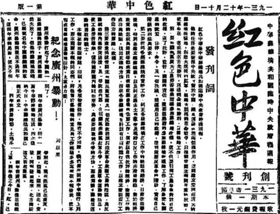1931年12月11日,《红色中华》创刊于江西瑞金,初期为中华苏维埃共和国临时中央政府机关报。1933年2月7日,从第50期起,改为中国共产党、中央工农民主政府、中华全国总工会和中国共产主义青年团合办的中央机关报。