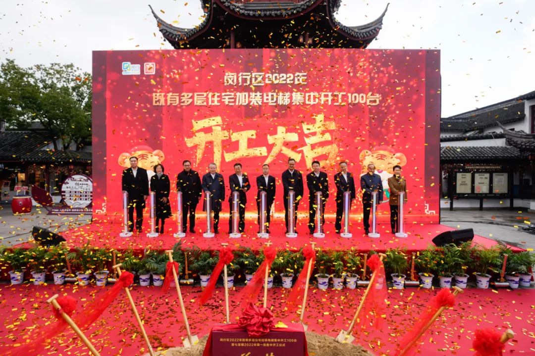 2月10日,闵行区举行2022年既有多层住宅加装电梯100台集中开工仪式,七宝镇、虹桥镇、梅陇镇、莘庄镇、莘庄工业区、江川路街道等主、分会场同时有100台加装电梯集中开工。