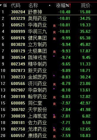 今日医药股集体下挫成市场杀跌主力,中药、新冠检测、CRO等多个子板块跌幅居前。