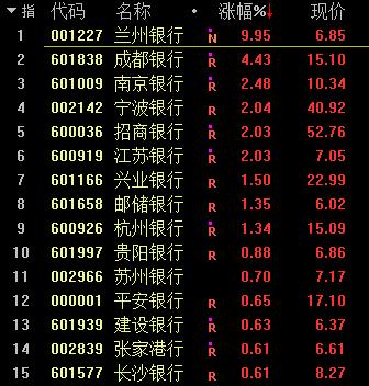 9000亿巨头中国人寿全天大涨7%,银行板块中,兰州银行涨停,成都银行、南京银行跟涨;券商板块中,湘财股份涨幅居前。