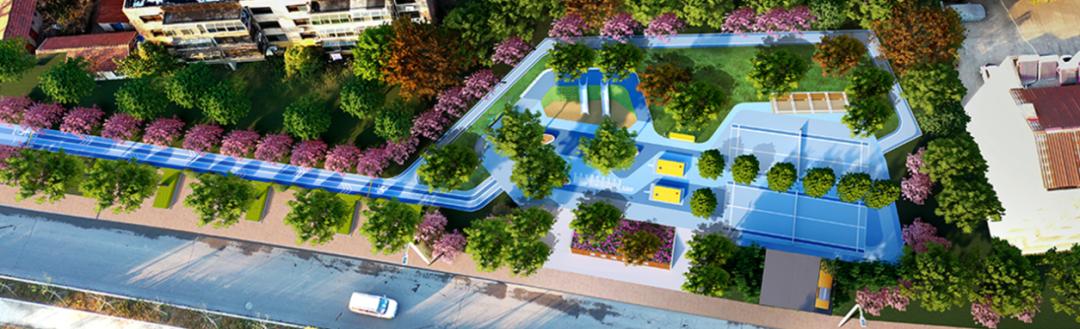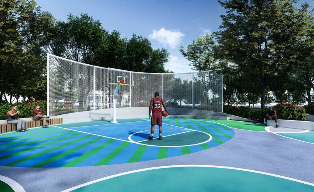公园以活力运动为主题。设计结合现状绿地,增设篮球场、羽毛球场、五人制足球场、公厕、园林养护工具间、林荫停车场等,为周边居民及学生提供实用便利的休闲活动空间。
