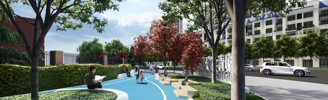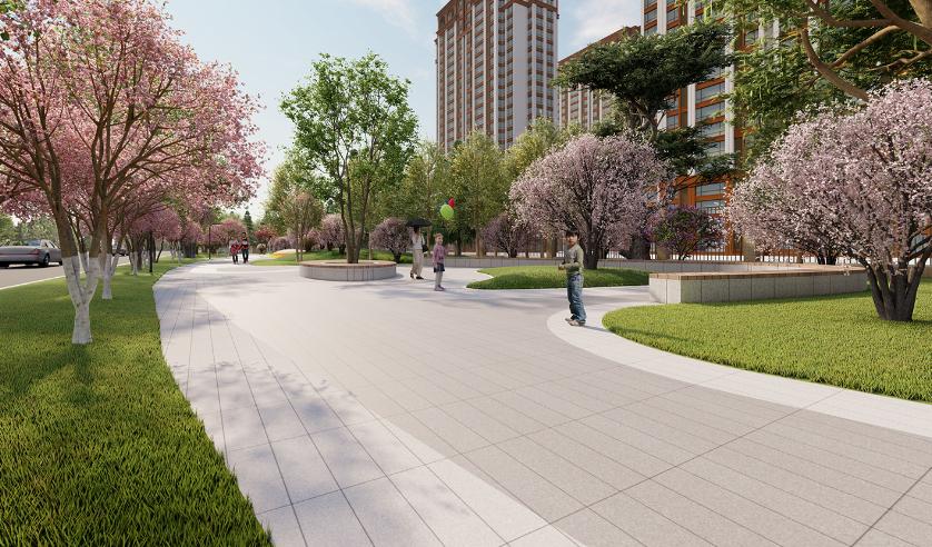 公园定位为休闲、邻里交流为主题的艺术阅读公园。结合现状树阵,设置艺术桌凳、条石座椅等景观小品打造林下阅读空间。同时,在现状植被的基础上增加紫薇、樱花等观花树种。